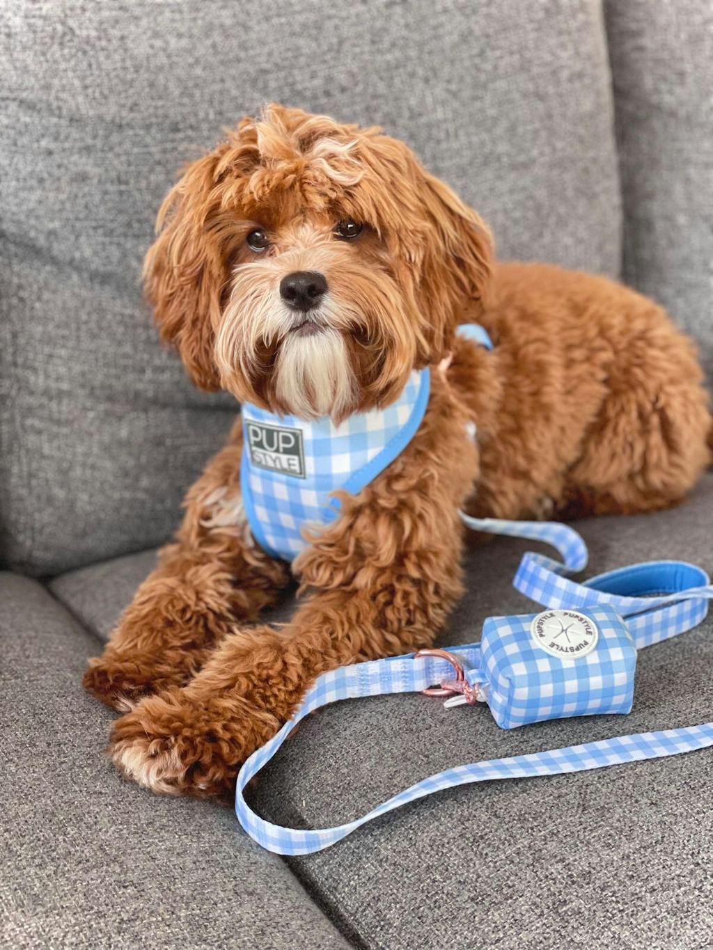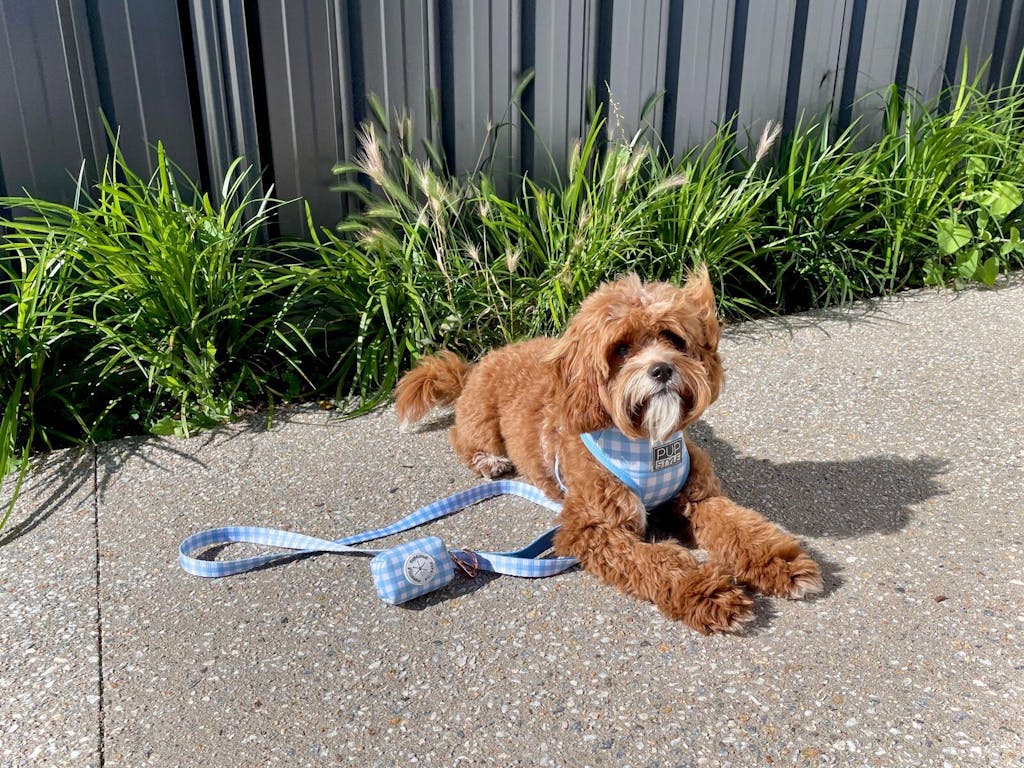 Check out the harness, lead, collar and Poop Bag Holder for individual product information and their 5-star reviews.